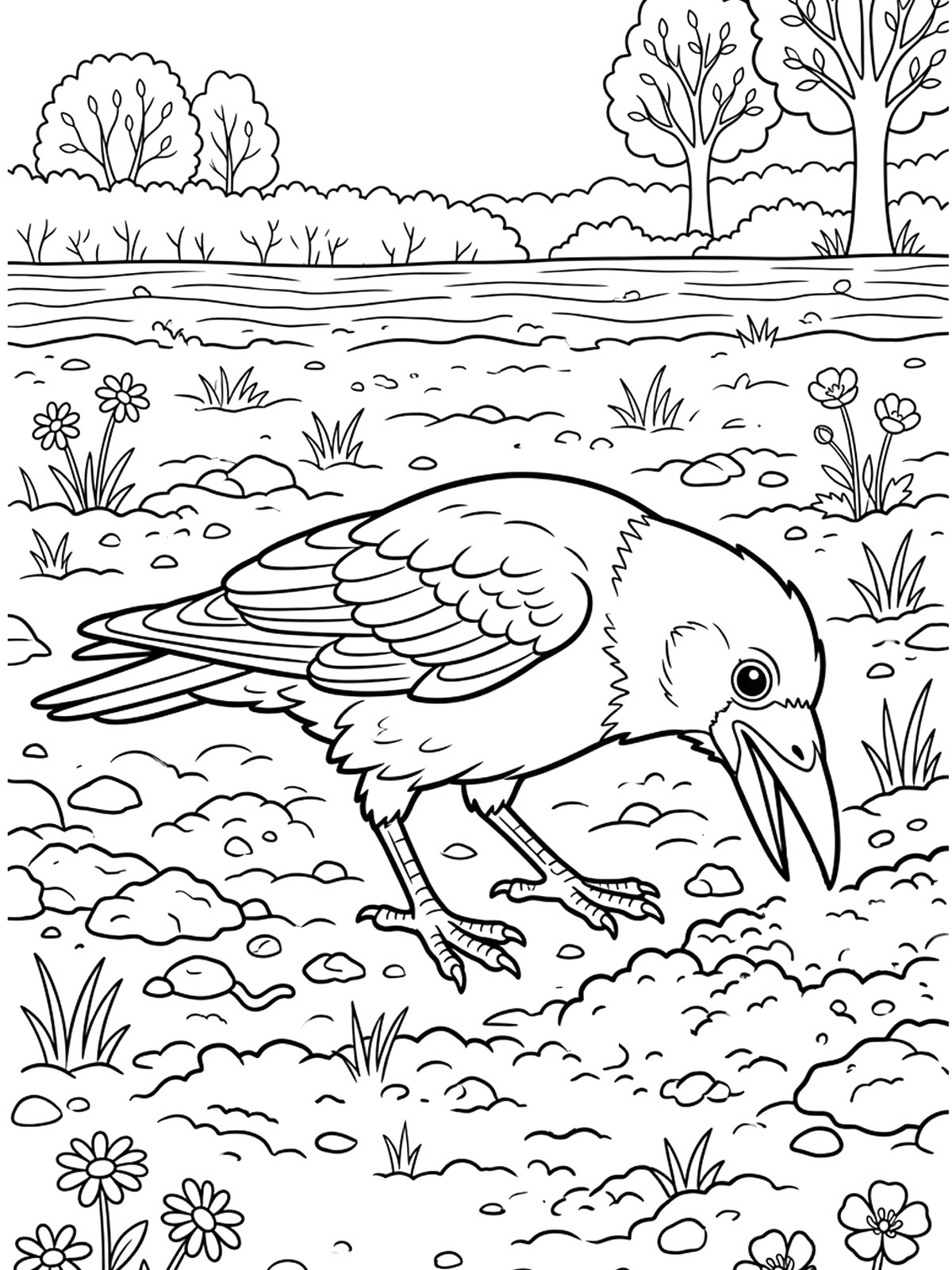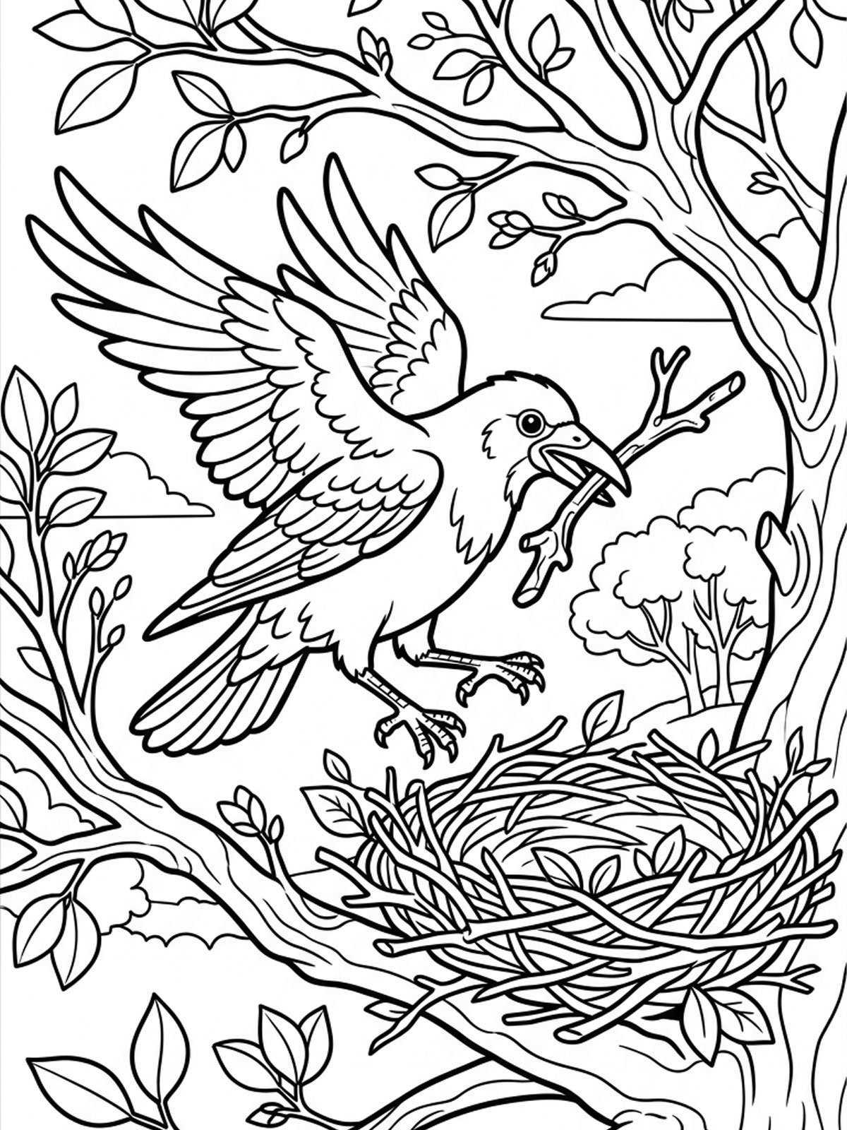 Раскраски грачей показывают птиц на проталинах, на ветках берез и рядом с большими гнездами из сухих веток. Есть и простые рисунки с одним грачом, и более подробные весенние сцены с несколькими птицами.