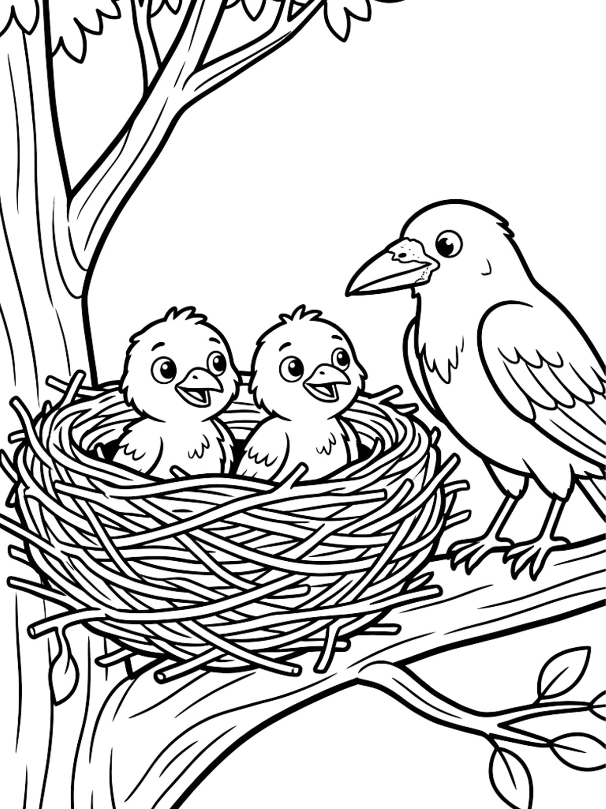 Можно скачать и распечатать бесплатно как простые раскраски для детей, так и более детальные варианты, где хочется аккуратно проработать перья, клюв и сухие ветки.