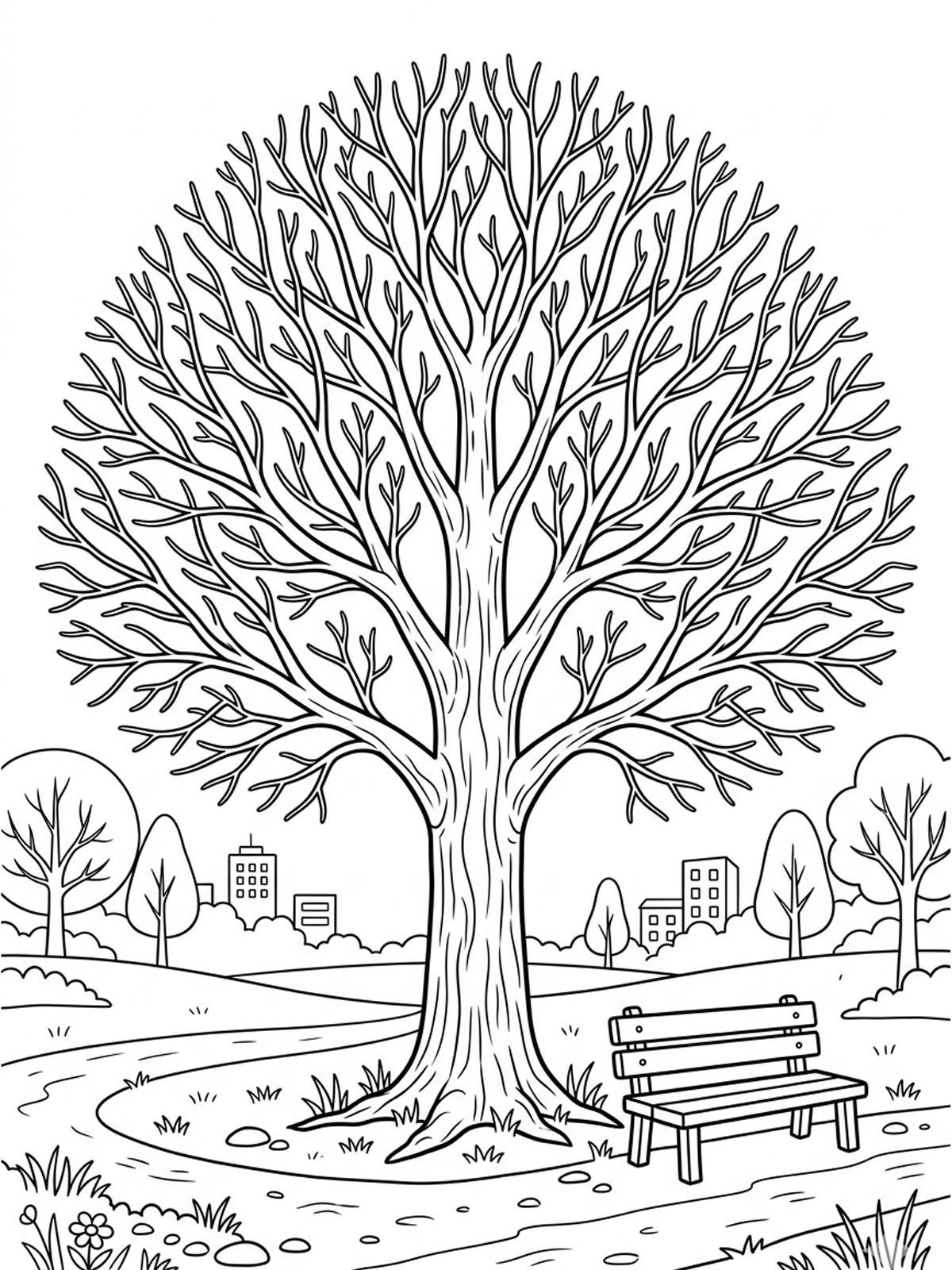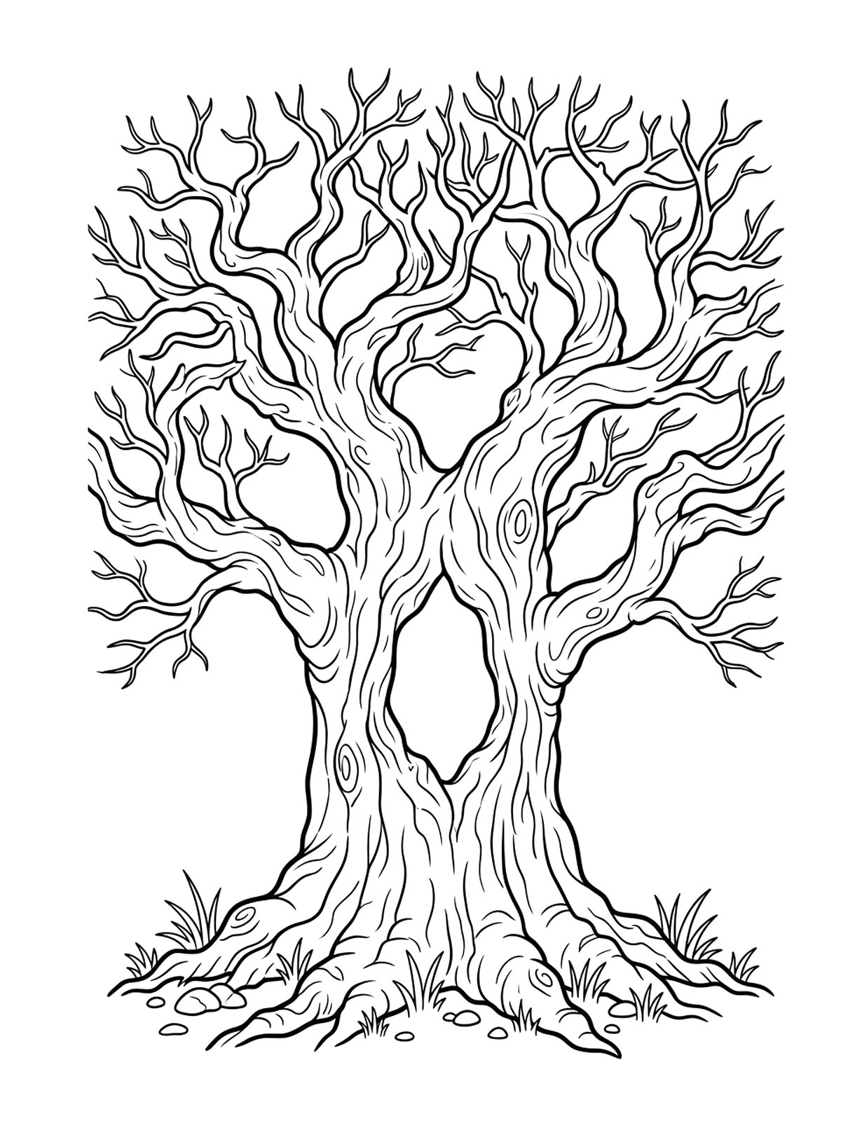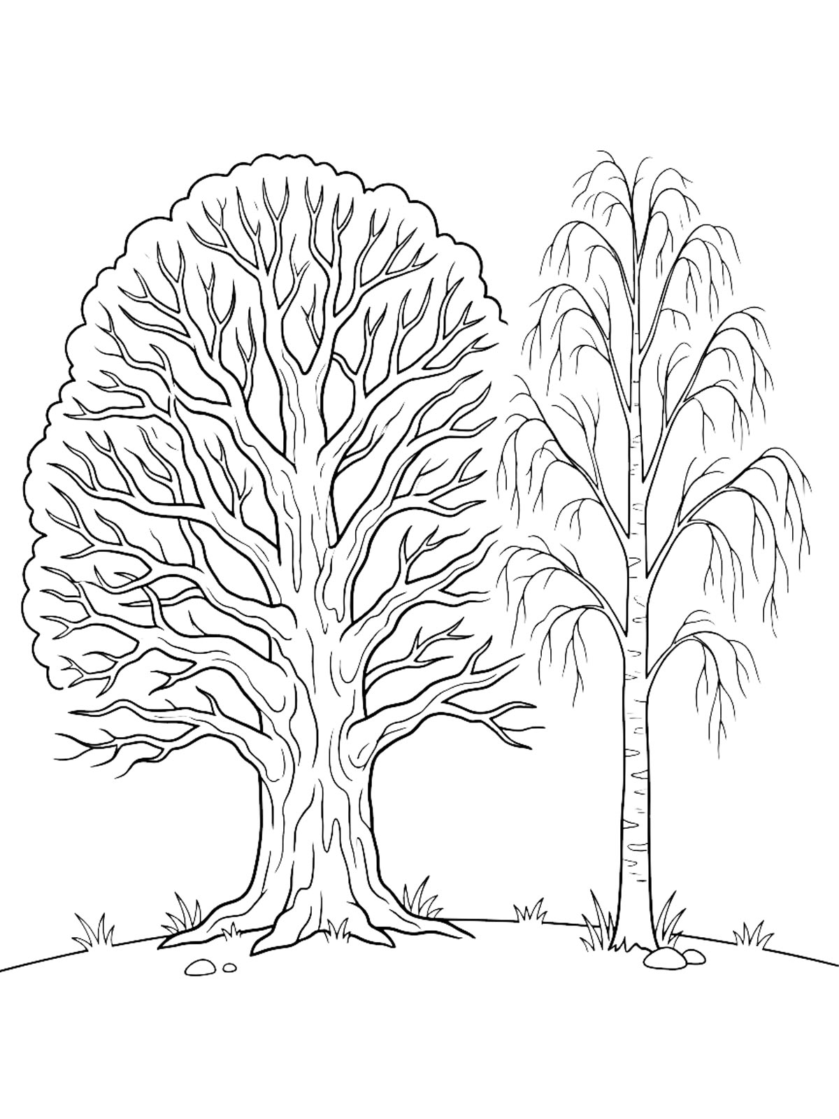 Раскраски Дерево без листьев – череда картинок, на которых изображены стволы и ветви без густой шапки из листьев. Так деревья выглядят в холодное время года. Осенью деревья начинают расставаться с листвой, причем происходит это в разное время. Например, у липы и березы крона редеет уже с середины сентября, а вот на ивах и яблонях листья держатся до самого конца осени, несмотря на заморозки. Раскраски на этой странице предназначены для маленьких фантазеров, которые смогут дополнить контуры деревьев по своему выбору. Например, дорисовать пышную зеленую крону, чтобы получилось дерево летом, или добавить ярких желтых и красных оттенков, изобразив золотую осень. А можно нарисовать волшебное дерево и использовать для листьев все цвета радуги или украсить ветки яркими плодами. Так юные художники создадут свой собственный таинственный лес, не похожий ни на какой другой, а каким он будет, зависит только от них. Мы собрали для вас отличную коллекцию раскрасок с Деревьями без листьев, которые вы можете бесплатно скачать или распечатать в формате А4.