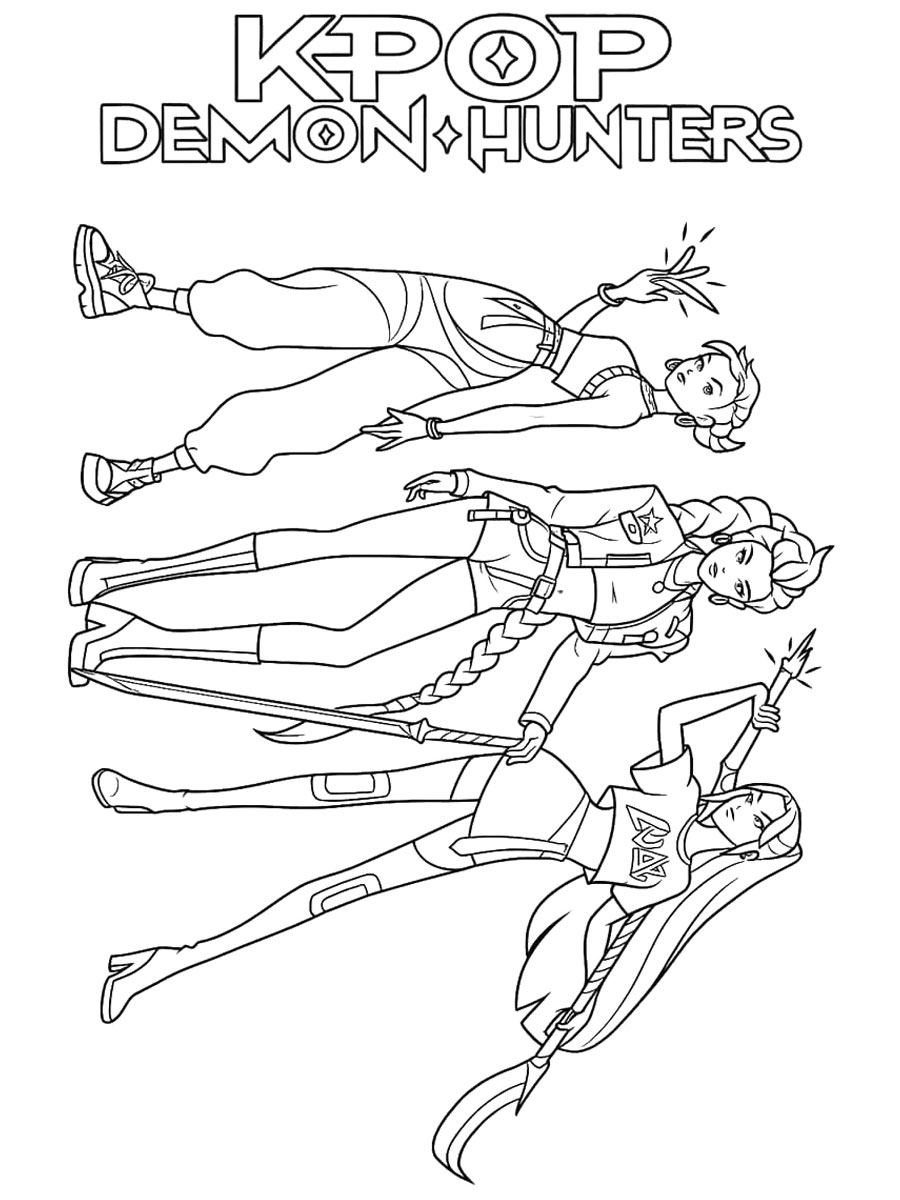 На этой странице собрана подборка раскрасок с охотницами на демонов в стиле кейпоп. Здесь дети найдут как простые изображения для начинающих, так и более детализированные рисунки для тех, кто любит прорабатывать каждый элемент — от костюмов до эмоций персонажей. Все картинки можно скачать бесплатно и распечатать в удобном формате.