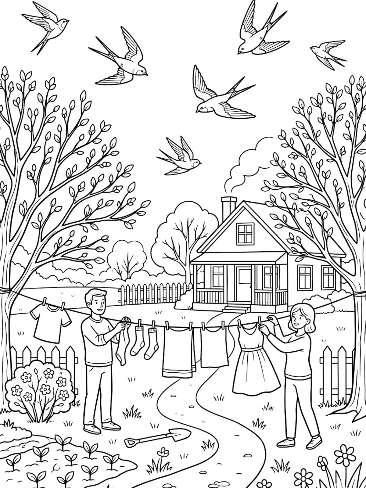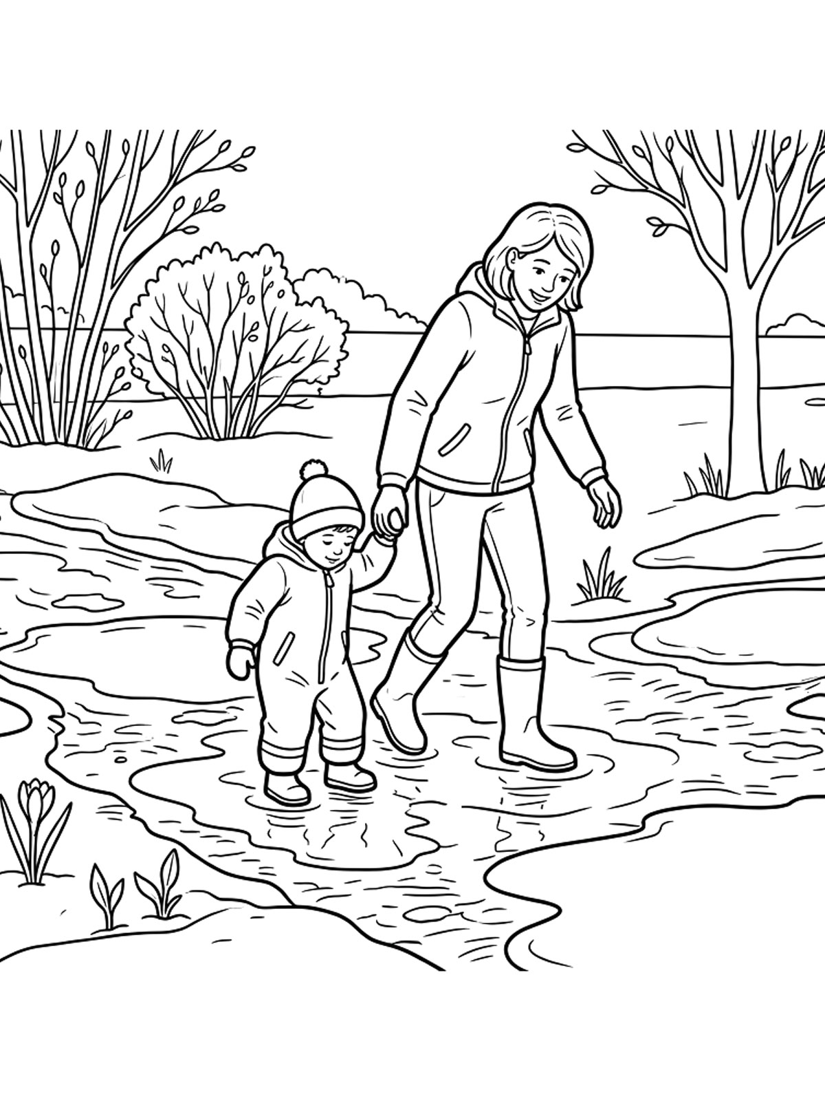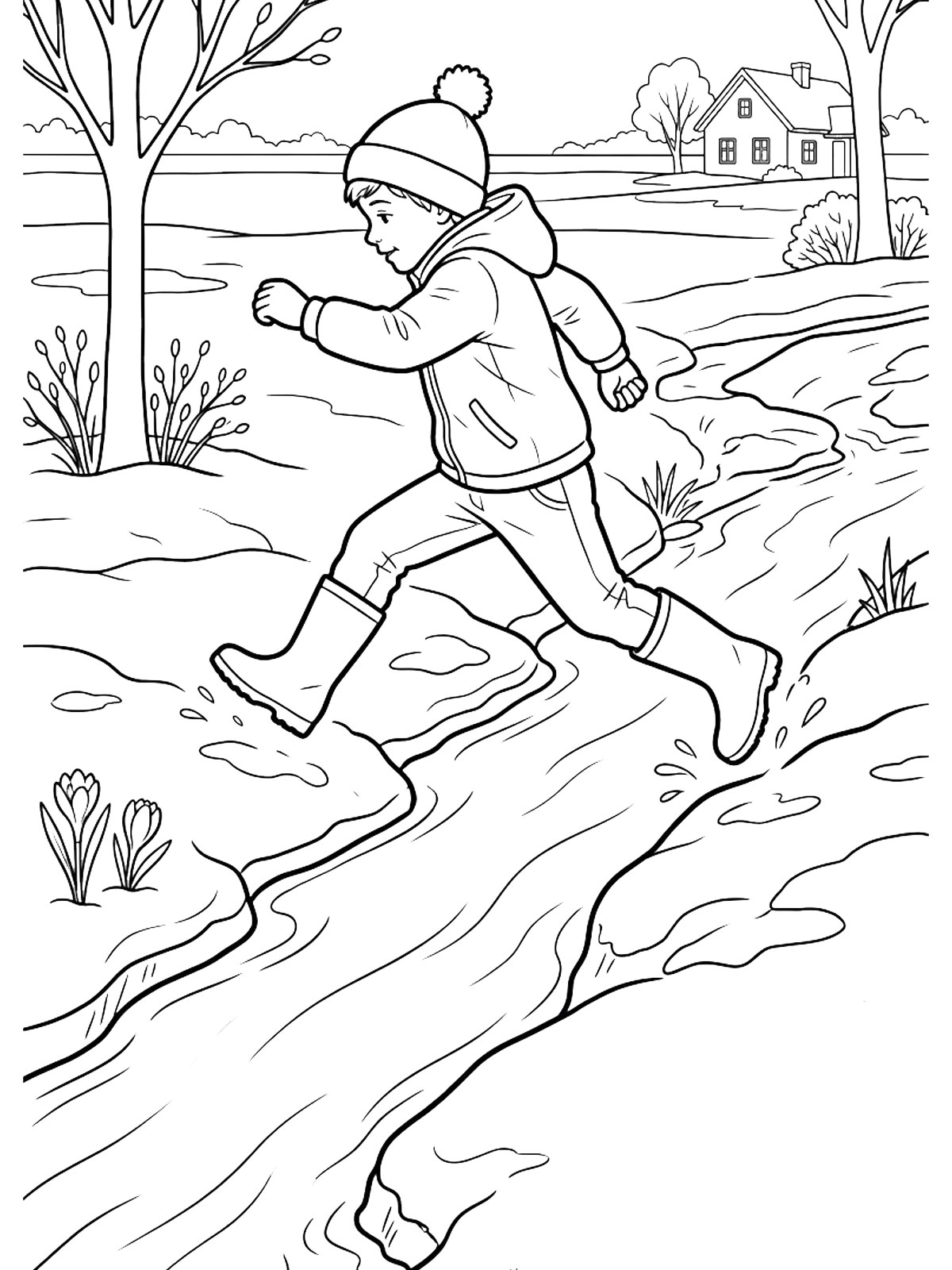 Раскраски Весна — это картинки с лужами, капелью, первыми цветами, птицами и деревьями с почками. На странице собраны рисунки, в которых весна узнаётся сразу по самым понятным деталям. Их можно скачать и распечатать бесплатно для спокойного и приятного занятия.