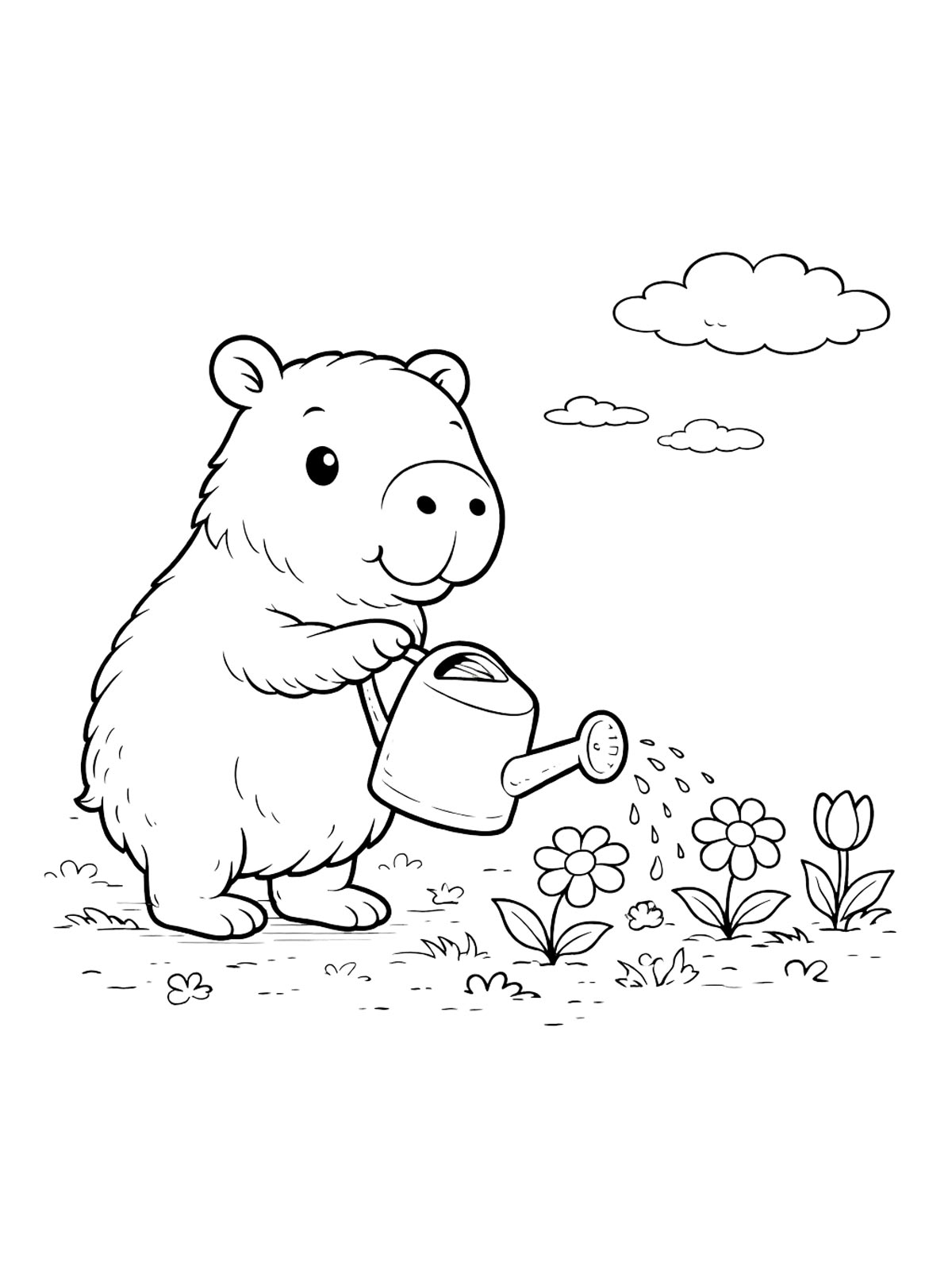 Капибара поливает цветы